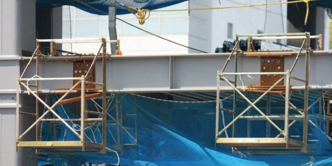 鉄骨造の梁の本締などをするときに使用する吊り足場