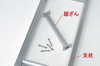・ボルト・ナット構造で、支柱・踏ざんが交換できる梯子です。