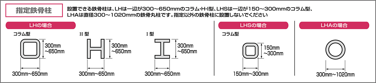 | LH-36A(角柱用) | LLS-31〜61 | 4.3 | 150 |