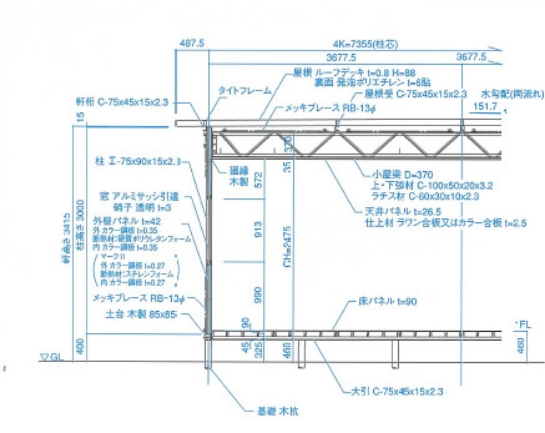 | 床組 | 大引 □=75×75 @1800 束、木杭、末口 75φ ?=900 |
