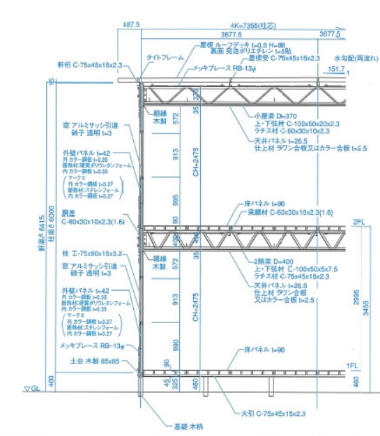 | 構造・軸 | プレース構造(裏側・桁側共) |