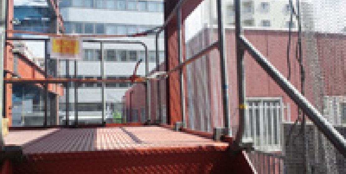 ・金具を回転させることにより、コンクリートで埋まることがなく、金具が出っ張らず階段通路を広く使用できる。