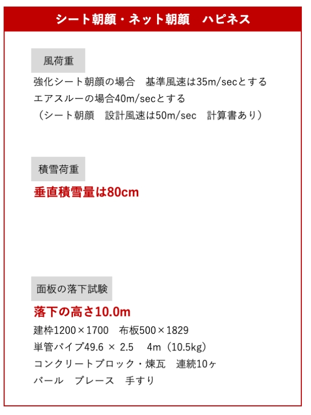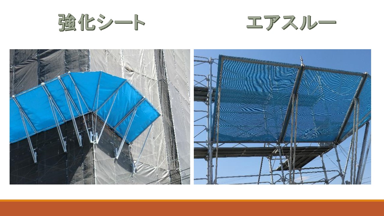 強化シートが35m/sec、エアスルーが40m/secの風荷重
