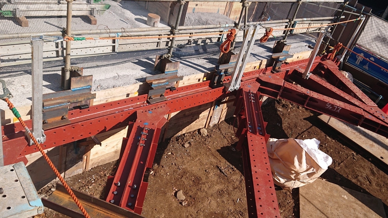 鉄骨建方、山留め工事における親綱の支持